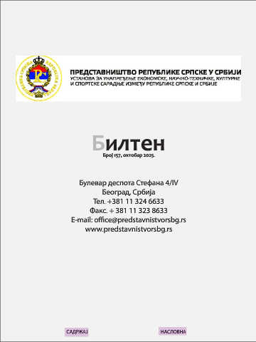 Билтен Број 157, октобар 2025. Булевар деспота Стефана 4/IV Београд, Србија Тел. +381 11 324 6633 Факс. + 381 11 323 8633 E-mail: office@predstavnistvorsbg.rs www.predstavnistvorsbg.rs САДРЖАЈ НАСЛОВНА