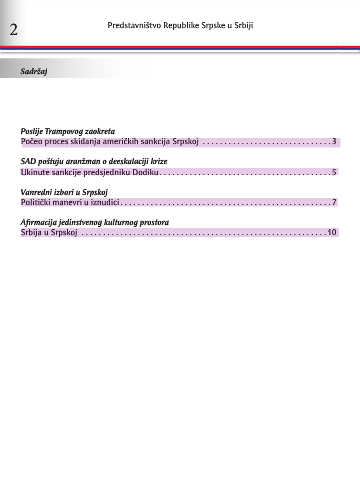 Počeo proces skidanja američkih sankcija Srpskoj . . . . . . . . . . . . . . . . . . . . . . . . . . . . . .3
