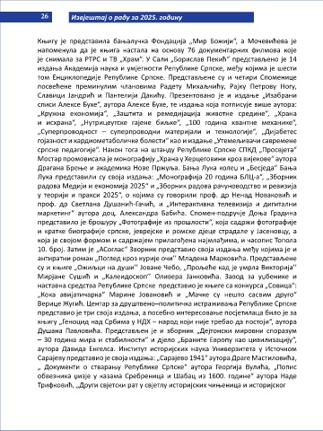 том Енциклопедије Републике Српске. Представљене су и четири Споменице факултет Универзитета И. Сарајево представио је своја издања „Монографија