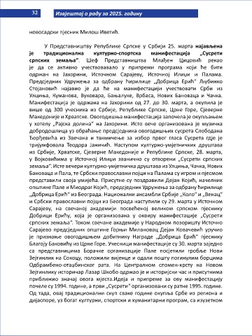 је традиционална културно-спортска манифестација „Сусрети Републике Српске у Србији, уз подршку Кабинета предсједника