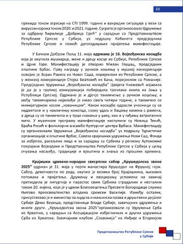 је традиционална културно-спортска манифестација „Сусрети Републике Српске у Србији, уз подршку Кабинета предсједника