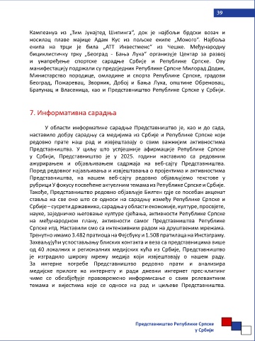 Српске. Новозеланђанин Пол Рајт побједник је треће етапе бициклистичке Такође, Представништво редовно објављује Билтен гдје се посебан акценат