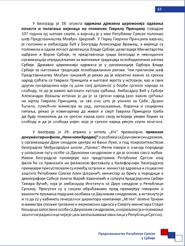 - Одјељења за међународну сарадњу, Представништво је пружило других сународника који су дали свој допринос у борби српског народа за