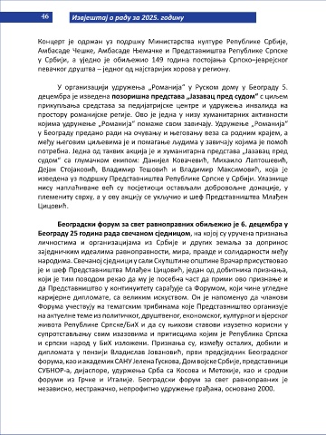 којима удружење „Романија“ помаже свом завичају. Удружење „Романија“ и међународног положаја Србије и Републике Српске и српског народа у