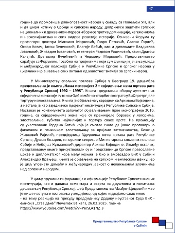 изведена уз подршку Представништва Републике Српске у Србији. Улазнице свједочења жена које су током Одбрамбено-отаџбинског рата у БиХ претрпјеле