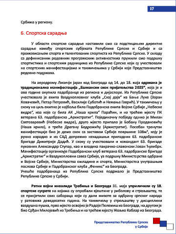 Републике Српске, љекара, као и представника јавних установа, удружења и У области спортске сарадње наставили смо са подстицањем директне