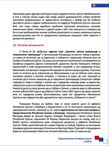 личних и породичних права која корисници остварују преко Представништва по 10. Остале активности