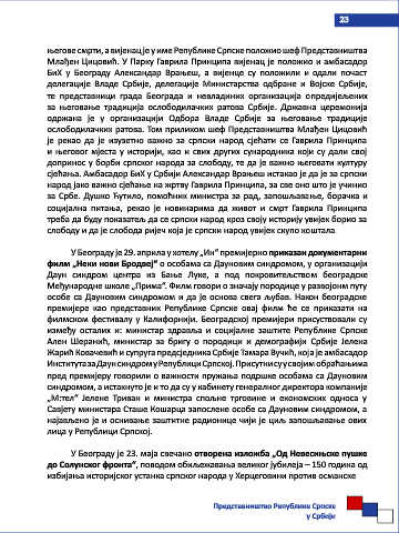 Представништво је у априлу припремило штампану верзију брошуре - У Београду је 29. априла у хотелу „Ин“ премијерно приказан документарни