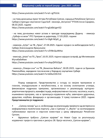 26 Извјештај о раду за период јануар - јуни 2025. године 27
